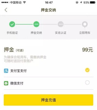 酷骑:押金298元,除了支付宝、微信之外,还可以用百度钱包支付。费用是半小时0.3元,注册赠10张永久有效的30分钟用车券。